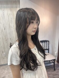 ロングの場合、ねじって乾かしていただくとコテ巻き風のパーマが完成します☆