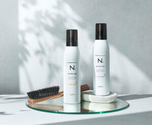 スタイリング剤は、最近新発売したN.のムースをオススメしております。こちらのムースは泡とオイルの良い所どりで、ムース本来のリッジが出やすく操作がしやすいという利点に加えオイルが入ることによって艶としなやかさがこれ一本で実現可能です♪
